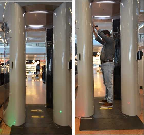 Die richtige Benutzung der Körperscanner – wann Betreten, richtige Positionierung, ruhiges Verharren und Verlassen des Geräts – war bisher ein zeitraubender, erklärungsbedürftiger Prozess für Fluggäste und Sicherheitspersonal. Ein kontrollierter, selbsterklärender Anzeigeprozess auf Basis des SensFloor-Systems optimiert und beschleunigt jetzt diese Kontrollen, in dem die Benutzung des Scanners nun schrittweise für jeden Gast deutlich visualisiert wird.