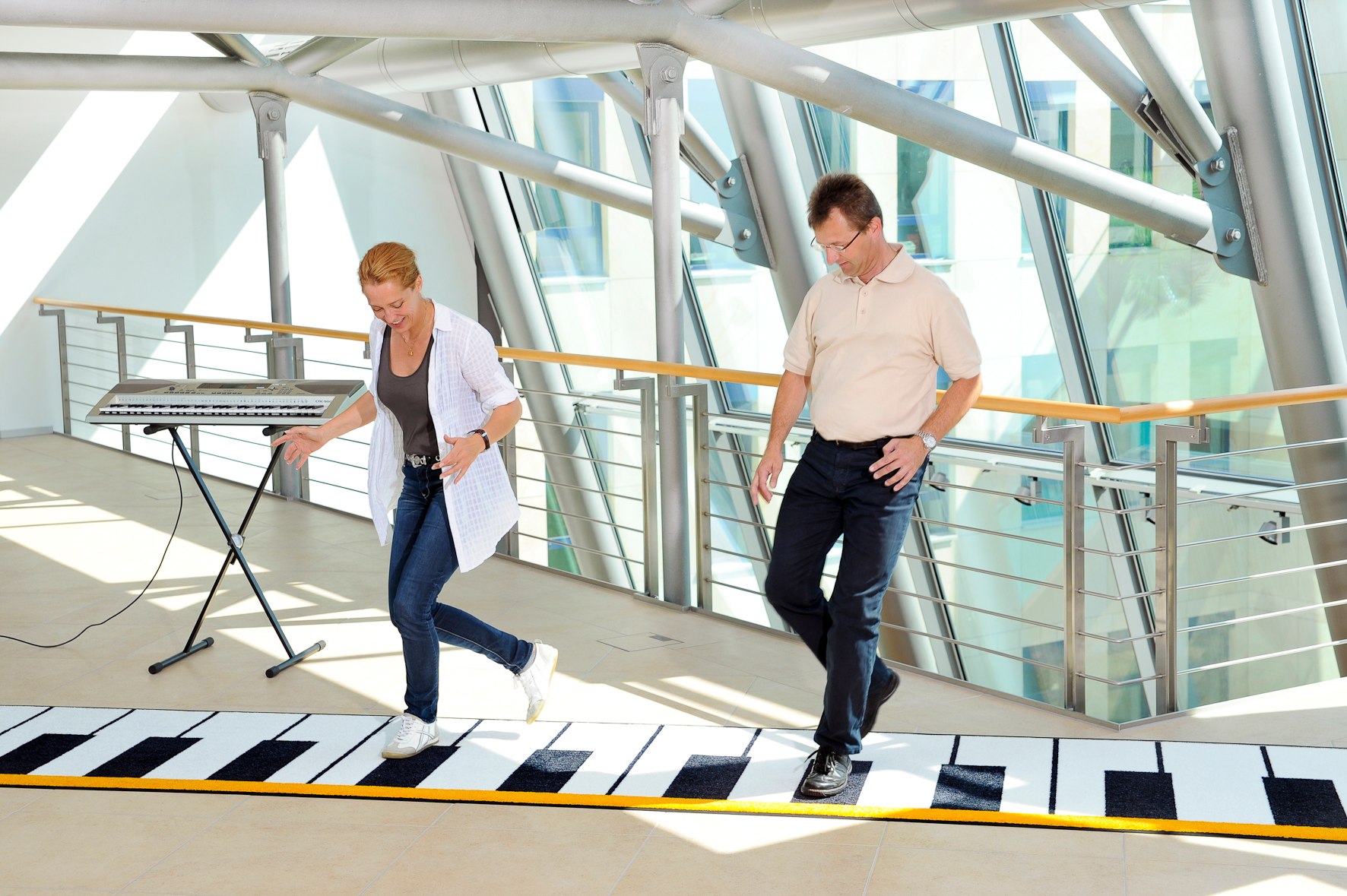 Klavierspielen mal anders! Das SensPiano als mobile Mattenversion oder als feste Installation unter Belag war bei schon bei unterschiedlichen Kunden sowie auf Messen und Veranstaltungen ein Eycatcher.
